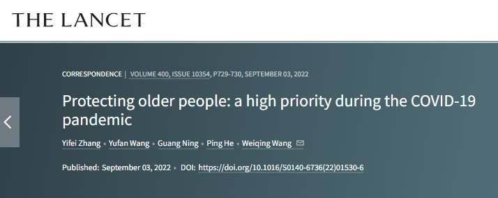 9月3日,上海交通大学医学院附属瑞金医院内分泌代谢科、上海市内分泌代谢病研究所、国家代谢性疾病临床医学研究中心王卫庆教授领衔团队在《柳叶刀》杂志发表通讯文章:《Protecting older people:a high priority during the COVID-19 pandemic》,重点阐述了新冠疫情期间保护老年人群的重要性和可行策略。